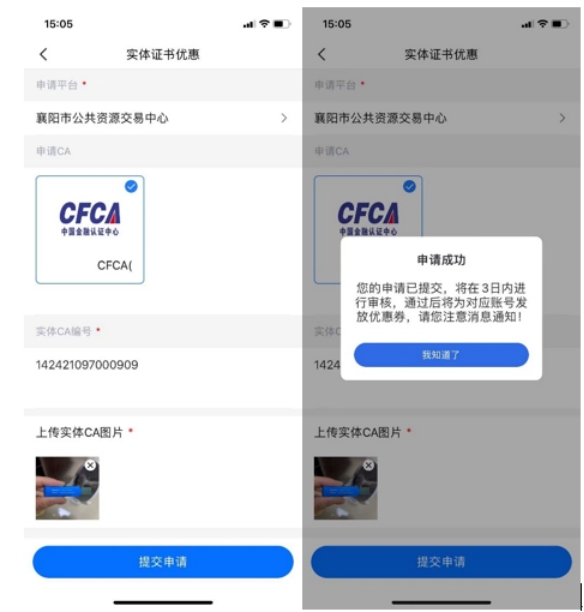 六、实体证书优惠券标红信息填写后提交申请,审核通过后优惠券会发放到对应账号;