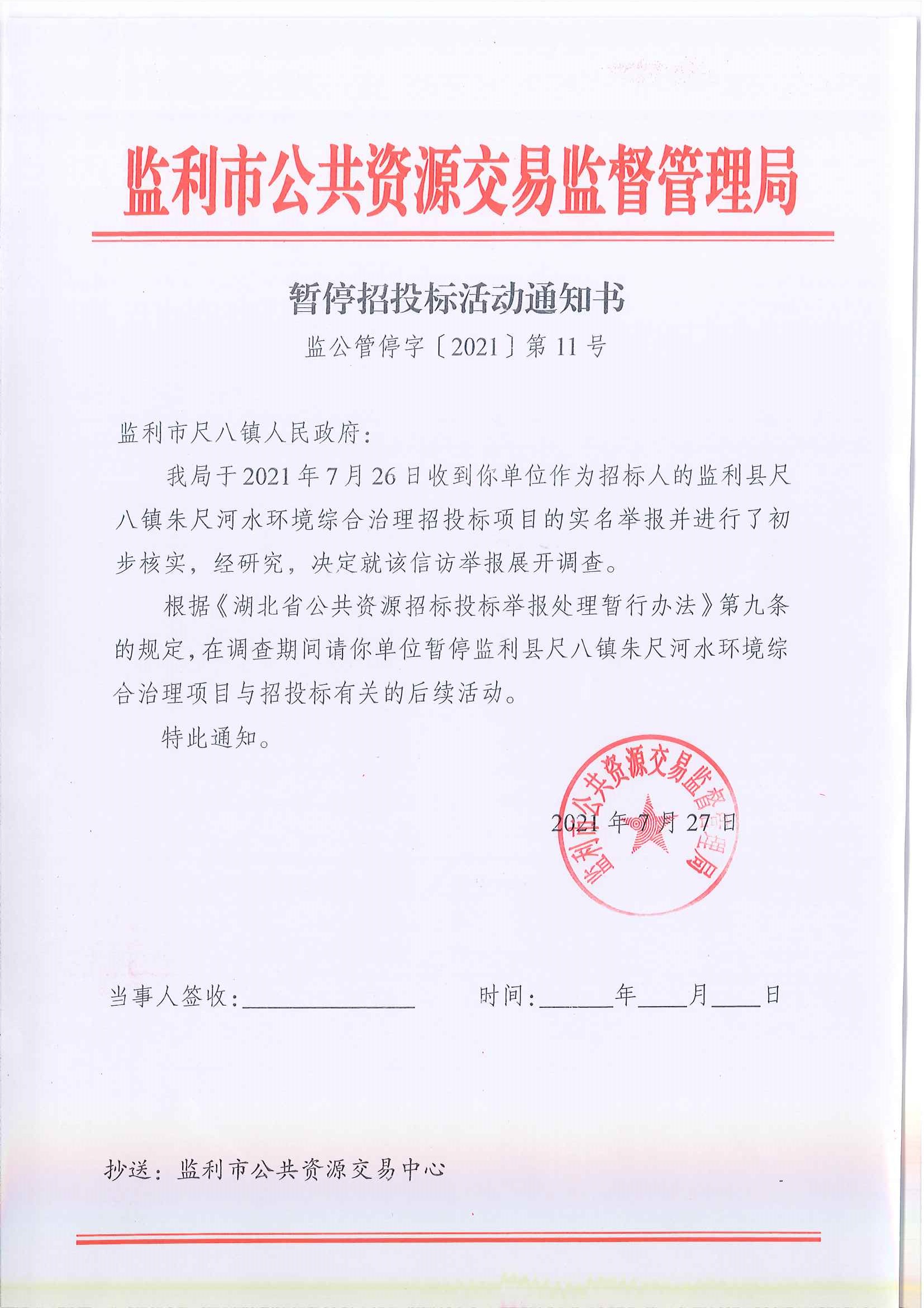【监利县中心】监利县尺八镇朱尺河水环境综合治理项目暂停公示(JZJL-202106SL-007001001)