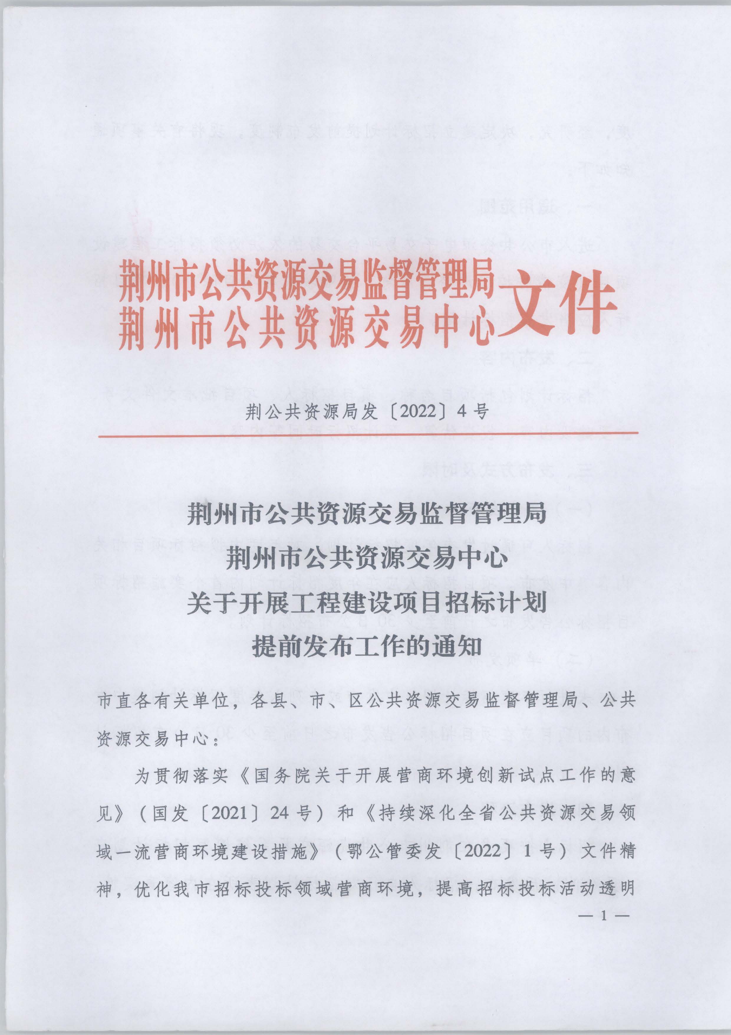 关于开展工程建设项目招标计划提前发布工作的通知