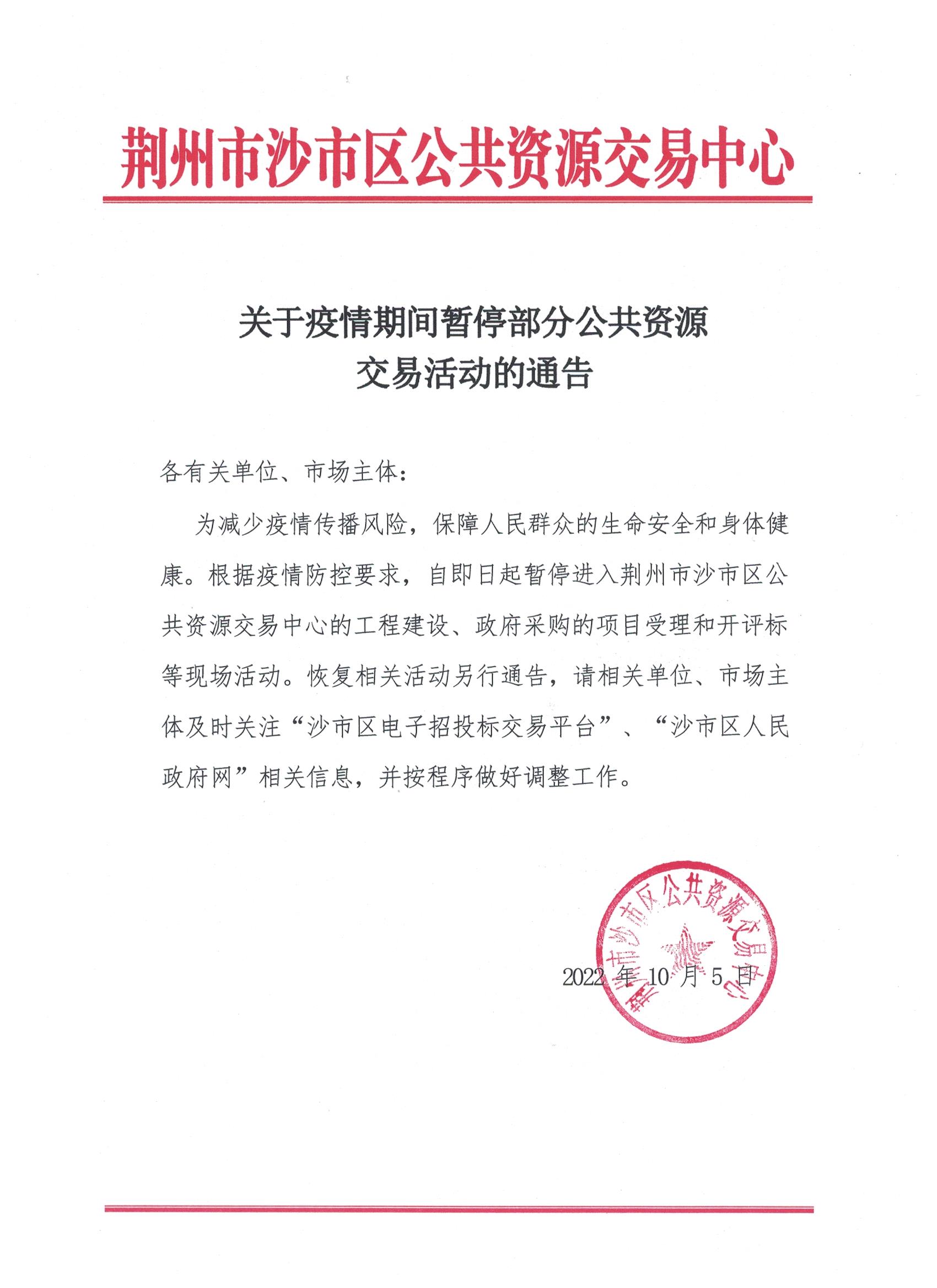 关于疫情期间暂停部分公共资源交易活动的通告