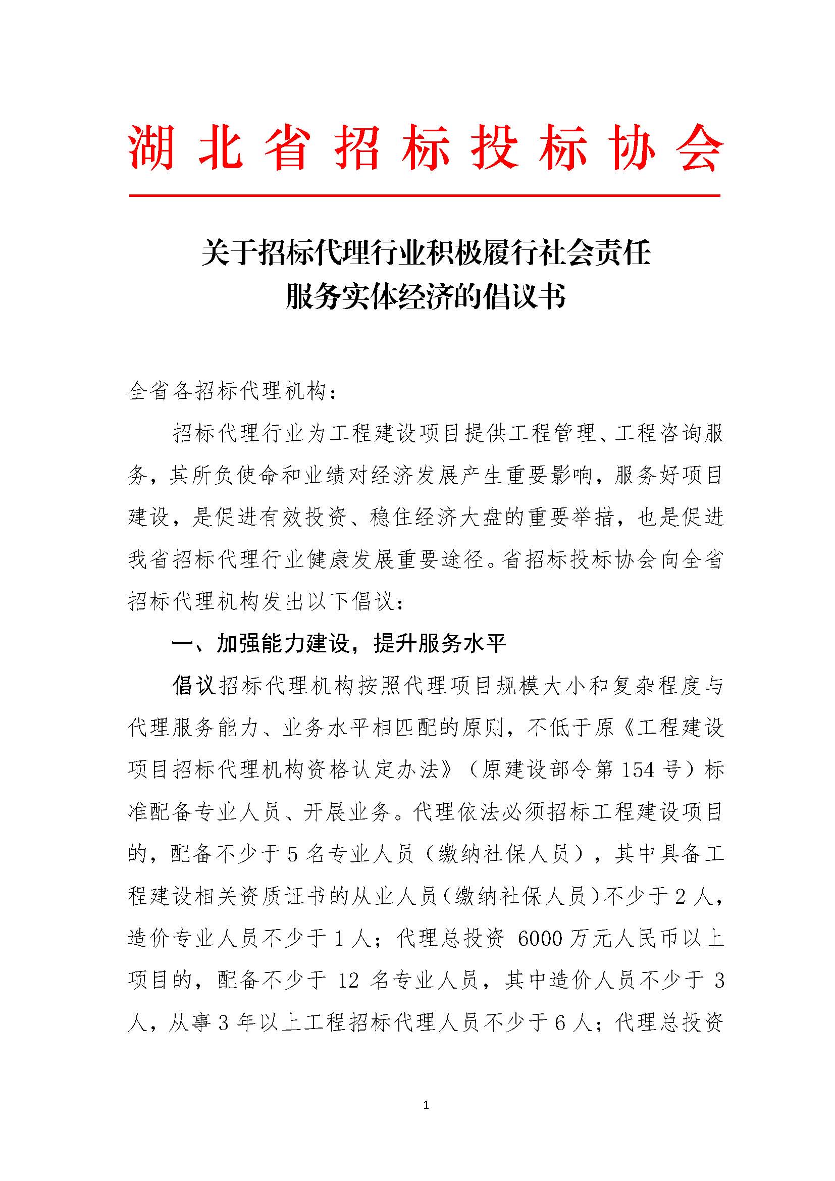 关于招标代理行业积极履行社会责任服务实体经济的倡议书