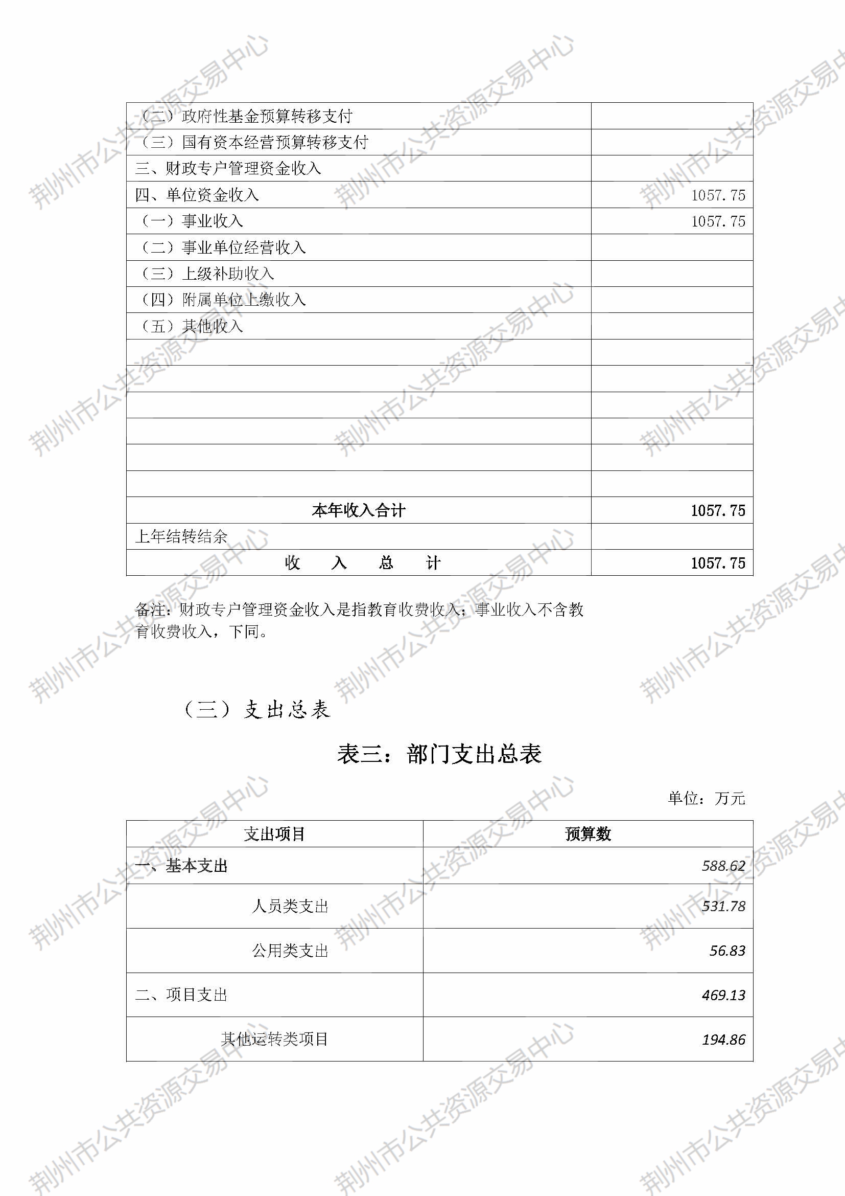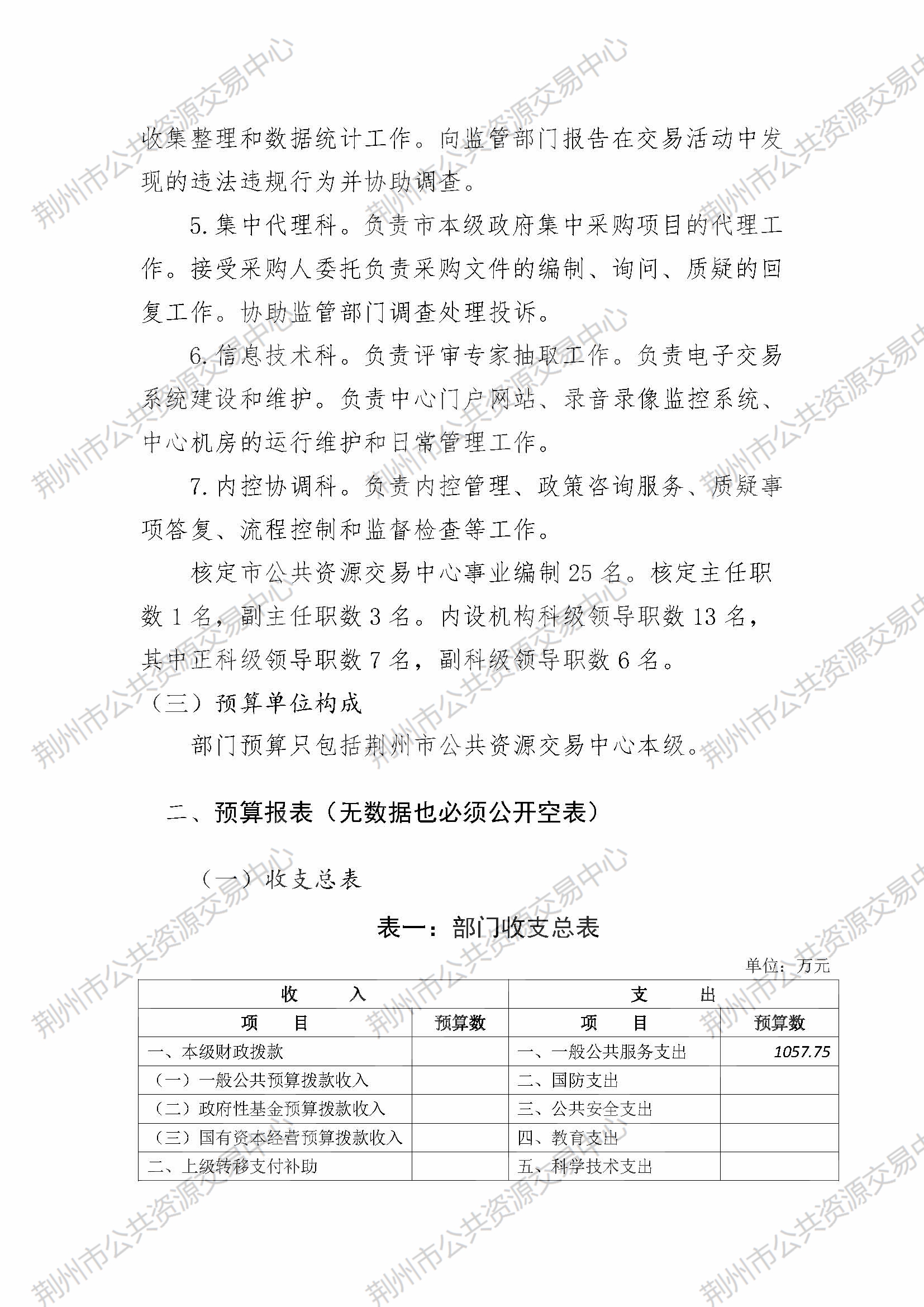 荆州市公共资源交易中心2023年部门预算公开