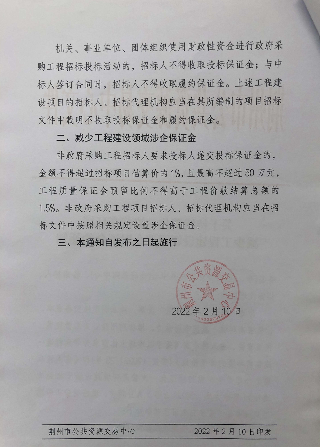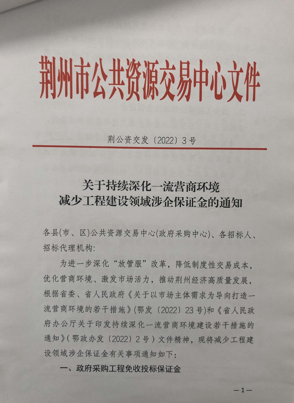 关于持续深化一流营商环境减少工程建设领域涉企保证金的通知